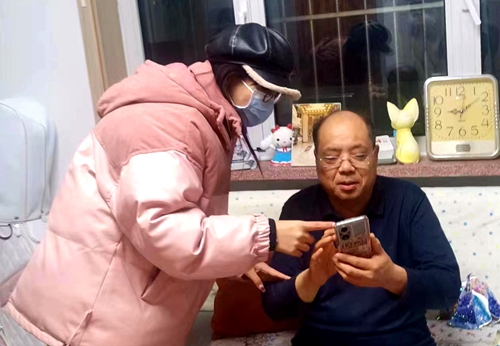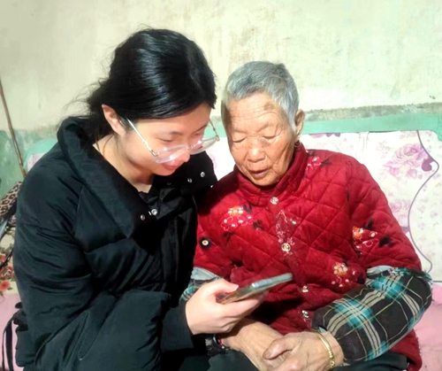 志愿者指导老人使用手机