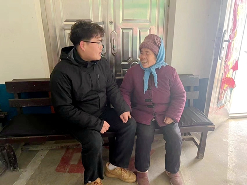 志愿者为老人讲解冬季用电安全知识