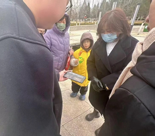 学生在景区利用自己制作的视频宣传保护生态环境的做法