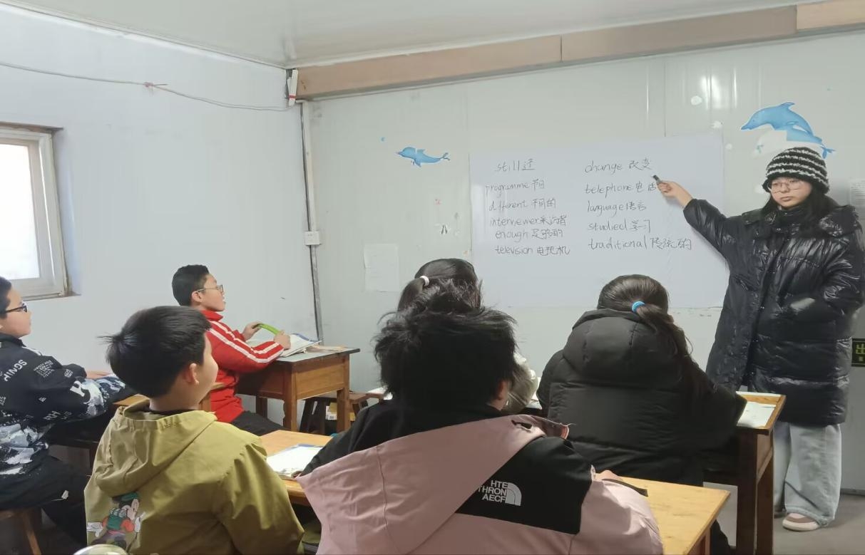 学生温丽梅在家乡支教