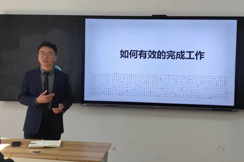 培训中,张莹对典型校园火灾案例进行了剖析,并围绕学校消防安全管理、防火巡查检查内容及方法、常见消防器材的使用及“消防四个能力”建设等方面展开详细阐述;高利波结合2023年工作案例,围绕学校治安管理、防盗窃、防诈骗、校园交通安全等主题开展培训;孙德鹏以“关于如何有效的完成工作”为题,阐述了PDCA质量管理的工作方法;最后,周龙讲解了学生公寓控电系统的功能,并演示了新安装智能控电模块的界面及操作方法。