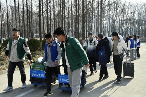 3月2日,生物与化工学院举办2023级五年贯通培养新生迎新系列活动,来自青岛市化工职业中等专业学校和青岛经济职业学校的180名学生入校报到。当满载新生的大巴车抵达学校,生物与化工学院师生志愿者们用热情周到的服务对新入校学生表示热烈欢迎。学院安排志愿者积极帮助新生运送行李,师哥师姐们带领学生走进宿舍、校园,尽快熟悉环境,了解学院文化。