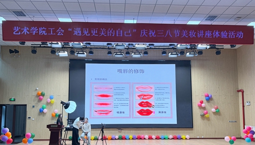 为庆祝三八妇女节,倡导女教职工关注自我、提升形象,3月7日下午,由校工会主办、艺术学院工会承办的“遇见更美的自己”美妆讲座体验活动在创意楼举办。活动邀请山东电视台、青岛电视台特约化妆师王春言主讲,以直播形式进行,吸引了各二级工会女教职工纷纷参与。