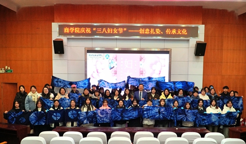 3月7日,商学院工会在学校报告厅举办“创意扎染 传承文化”主题活动,商学院相关负责人、女教工、女学生代表、志愿者等200余人欢聚一堂,共同庆祝第114个三八国际劳动妇女节。此次工会活动得到艺术学院的大力支持。