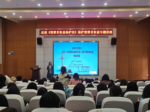 3月14日,在“3·15”国际消费者权益日即将到来之际,马克思主义学院党总支在报告厅举办了“走近《中华人民共和国消费者权益保护法》保护消费者权益”法律大讲堂专题讲座。讲座由学校法律顾问工作组成员、马克思主义学院党总支第二党支部书记杨蜜教授主讲,120余名学生聆听了讲座。