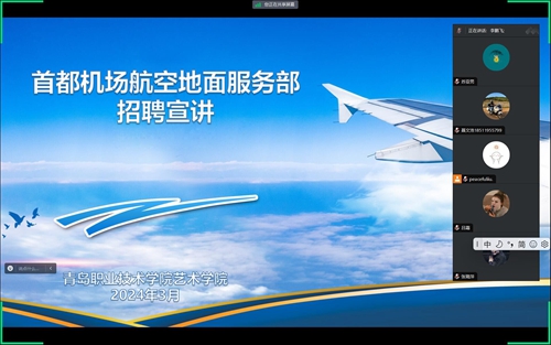 3月13日,艺术学院空中乘务专业通过腾讯会议线上举办2024届毕业生企业宣讲会。宣讲会邀请北京空港航空地面服务有限公司、北京首都机场航空服务有限公司、北京首都机场航空安保有限公司3家单位进行线上宣讲招聘。