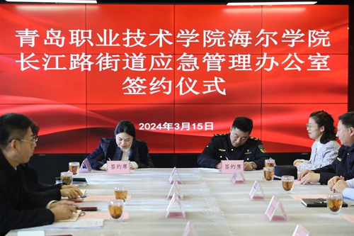 3月15日下午,海尔学院党总支与青岛西海岸新区长江路街道“校地携手共建,赋能高质量发展”主题活动在长江路街道峨眉山路社区党群服务中心举行。长江路街道相关负责人,街道应急办、执法中队等科室负责人,紫金山路社区、沅江路社区、峨眉山路社区、香江路社区党委书记,维多利亚vic003宣传部、团委、海尔学院党总支相关负责人等参加活动。