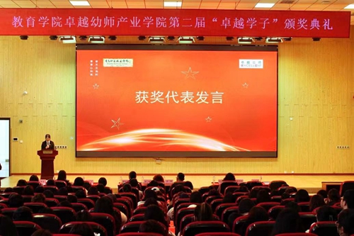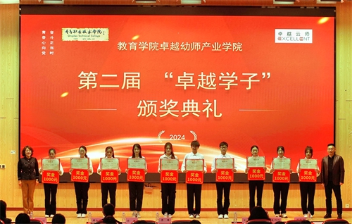 “卓越学子”奖学金共设立公益行动奖、师德风尚奖、综合实践奖、优秀学习奖、自强不息奖5个奖项。李峰对奖项设置及评选标准进行了介绍,并寄语学子“执着专注、精益求精、一丝不苟、敢为人先、追求卓越”,同时表示将继续从“专家引领、专业建设、人才培养、师资队伍、教育教学、专业实训、就业指导”等多维度深入开展校企合作,努力打造社会认可、学生满意的口碑专业。教育学院党总支书记薛红燕宣读了《关于表彰卓越幼师产业学院第二届“卓越学子”的决定》。师生通过视频了解了获奖学生奋发进取、勇于创新的先进事迹。