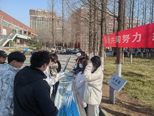 今年3月24日是第29个世界防治结核病日,宣传主题为:你我共同努力,终结结核流行。为进一步加大结核病防治工作力度,动员学生们共同关注和重视结核病防治工作,普及结核病防治知识,3月21日,后勤管理处在海悦厅门前开展现场宣传活动。