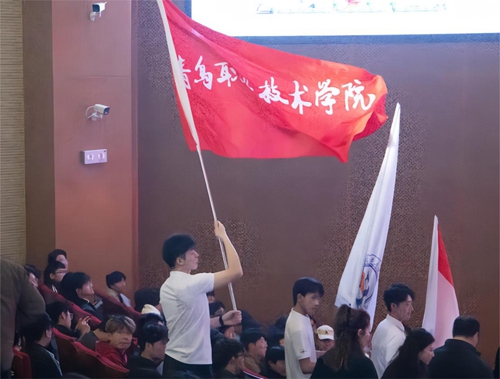 学校旗帜在会场飘扬