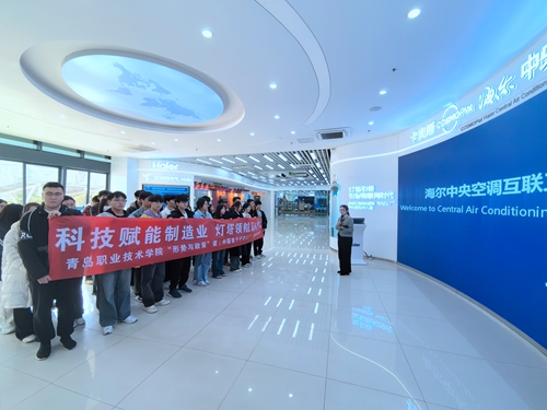 此次实践教学以“科技赋能制造业 灯塔领航新时代”为主题开展,由学校“形势与政策”课教师和企业导师共同完成。在海尔中央空调互联工厂,两位专兼职思政课教师马克思主义学院教师黄贞、信息学院教师江婷婷从“科技立则民族立,科技强则国家强”出发,围绕科技创新广度显著加大、深度显著加深、速度显著加快、精度显著加强4个方面,剖析阐述了世界科技竞争日趋激烈的新形势;讲解了海尔以科技创新推动产业创新,助力中国制造业向高端化、智能化、绿色化高质量发展的情况,引导学生担负强国使命,助力国家科技发展。企业导师重点讲解了海尔以科技创新推动产业创新,实现自身、行业、社会的多方共赢,助力中国制造业高质量发展情况;带领学生参观了海尔中央空调互联工厂展示厅、企业生产车间,介绍了海尔中央空调互联工厂发展壮大的历史,产品生产过程、海尔的企业管理模式和每个生产环节中的科技创新,引导学生感受中国工业发展的蓬勃活力,探寻灯塔工厂背后的智慧密码。