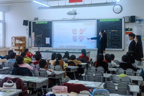 活动中,齐鲁第一实验小学为信息学院第二党支部书记王靓颁发“齐鲁第一实验小学少先队校外辅导员”聘书,为陈洁同学颁发“校外劳动辅导教师”聘书,为授课小讲师们颁发“科普小讲师”聘书。之后,王靓深入课堂为学生授课,小讲师们结合专业知识用心讲解,授课内容涵盖国家安全、红色文化、信息专业知识、小学生心理健康、预防网络沉迷等10个专题。小讲师们在讲授《趣味Python》《走进无人机》等课程中,通过生动的案例和互动游戏讲授科学技术,激发小学生们对科技创新的兴趣;在讲授《讲红色故事,扬时代新风》《中国领海,寸土不让》等课程中,帮助学生们了解红色文化,激发学生们的爱国热情。小讲师们还设计了互动环节,学生们积极参与其中,通过抢答问题、观看视频、击鼓传花等方式,活跃了课堂氛围。