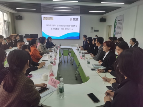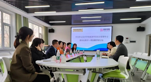 3月29日,旅游学院旅游管理专业在闻道楼研学实训室召开模块化教学研讨暨景区项目校企导师集体备课会。青岛明月海藻集团党委副书记、工会主席、文旅集团副总裁杨晓菁、青岛东方影都文化旅游管理有限公司山东区域人力行政总监赵有亮、潭溪山旅游发展有限公司总经理胡慧玲、青岛方特梦幻王国人力资源总监于美君、青岛藏马山国际旅游度假区经理陈晓丽及人力相关负责人,旅游学院院长王媛媛、副院长张明洪、旅游管理专业部主任及专业教师等参加了研讨会。