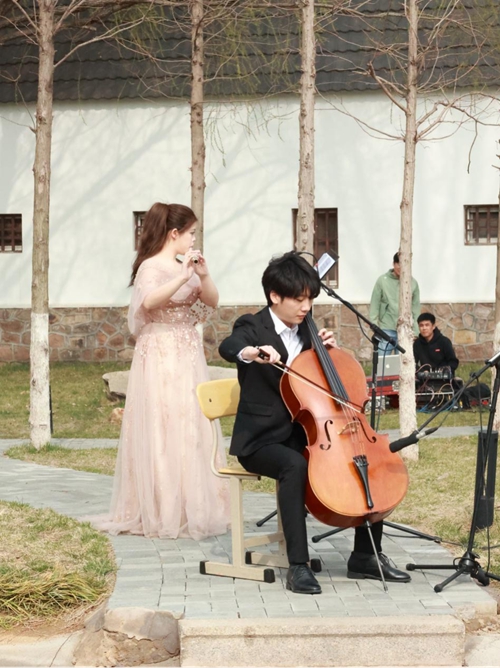 音乐会以一曲旋律悠扬、悦耳动听的民乐合奏《青玉案•元夕》拉开了帷幕。随后,男声独唱《春花秋月何时了》以饱含深情的歌声,将诗词中的感情表达得淋漓尽致;二胡独奏《战马奔腾》以富有变化的音色和激昂的节奏展现了战马的威武和力量;吉他单簧管合奏《贝加尔湖》让人感受到春日的温暖、宁静与浪漫;女声小合唱《声声慢》旋律温柔流畅,听如春风拂面;器乐合奏《爱的致意》在大提琴与长笛的悠扬音色里,传递温婉与柔情。