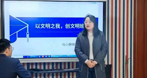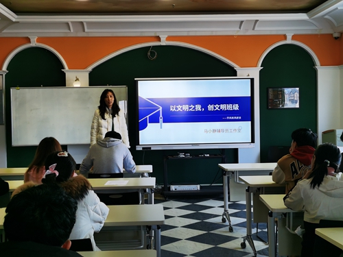 随后,工作室主持人马小静围绕“讲文明、树班风、强学风”,开展了专题讲座。班会最后,旅游学院党总支副书记刘海燕进行总结点评,系统分析了当前大学生活中存在的文明修身问题,进一步明确了学生个人行为规范的内容和要求,希望大家从“兴趣、价值观、能力和人格”4个维度寻找“真正的自己”,主动规划自己的大学生活,认识自己、接受自己,积极改变、寻求突破,唤醒自己,成就自己。