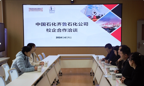 4月1日,中石化齐鲁石化公司人力资源共享项目部主管高海清一行来校开展校企合作洽谈。