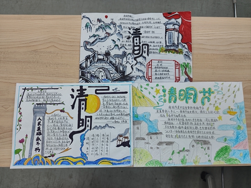 学生绘制清明主题手抄报