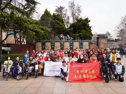 活动开展前,旅游学院教师孙山亦博士为“青旅爱无碍”志愿服务队的志愿者们作无障碍培训。活动现场,志愿者帮助参加人员有序聆听青岛无障碍环境促进会副会长“亢亢老师”二胡演奏;青岛无障碍环境促进会会长姜启红作无障碍科普及无障碍体验分享。活动中,“青旅爱无碍”志愿服务团队的志愿者们充分发挥无障碍旅游服务知识、无障碍旅游安全管理与救援技能优势,辅助有障碍人士漫步中山公园,体验无障碍设施,充分发挥文旅融合专业优势,讲解中山公园的建园历史与樱花长廊等景观,让有碍人士真正与青岛自然风光亲密接触。