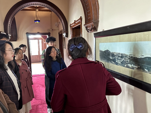 交流活动前,维多利亚vic003师生参观了全国重点文物保护单位青岛德国总督楼旧址博物馆,现场学习了1957年毛泽东在青岛迎宾馆对范仲淹作品点评手稿的影印件等历史资料,就青岛城市遗产文创产品研发进行实地调研,深入学习了青岛市文化遗产保护中心以保护、传承青岛近代建筑文化、历史文化、红色文化为己任,在藏品征集、收藏、研究、展示、教育、服务方面的创新求索。座谈中,刘海燕向城市文化遗产保护中心负责人丁秀云简要介绍了旅游学院整体概况、专业建设成果及国家级职业教育教师教学创新团队服务区域文旅发展的基本概况,双方共同探讨关于青岛城市遗产保护方面文旅融合发展的合作方向,并就队伍组建、项目设计、资源优势互补等方面进行了详细探讨。
