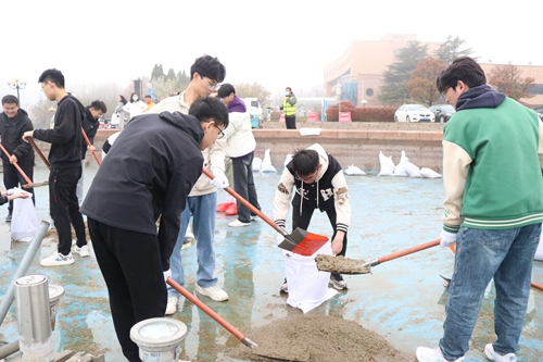 学员清理广场淤泥