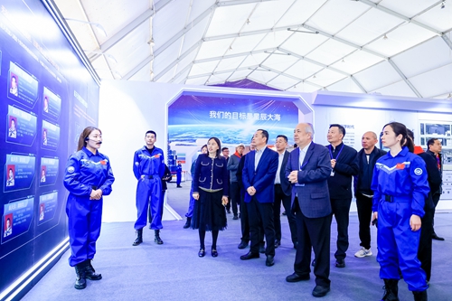 开幕式现场,旅游管理专业100余名学生激情洋溢地表演了合唱节目《祖国不会忘记》,以此赞美和歌颂我国航天工作者的辛勤付出与卓越贡献。开幕式圆满结束后,研学导师引领与会的领导、嘉宾共同参观了航天展,深入了解我国航天科技的魅力与成就。各展位讲解员以讲解和情景表演的方式,以航天历史时序为主线,从研制“两弹⼀星”到长征神舟飞天、探月探火,将中国⼈离开地球摇篮、探索地月系、向太阳系更远处前进的历程娓娓道来,将中国航天重大科技成果及中国航天人一往无前的精神展现得淋漓尽致,赢得了领导和嘉宾的一致好评。