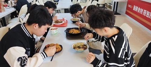 调研小组在青岛酒店管理职业技术学院西区餐厅品尝菜品
