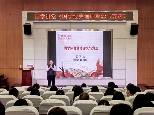 为加强大学生中华优秀传统文化教育,4月18日下午,马克思主义学院在学校报告厅举办了国学讲堂“国学经典诵读理念与方法”专题讲座。讲座由教育部中国教育学会家庭教育委员会“书香家庭”获得者、青岛市黄岛区人民法院党支部书记崔家远主讲,全校学生近200人聆听了讲座。