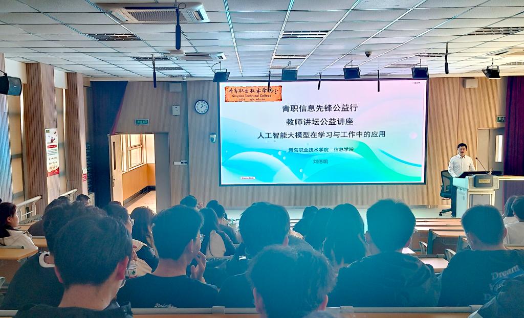 4月18日下午,信息学院在修能楼301教室面向全校师生举办了“青职信息先锋公益行”教师讲坛第七期公益讲座,由信息学院教师第二党支部党员刘德鹏博士作“人工智能大模型在学习与工作中的应用”主题讲座。信息学院部分教师和学生共130余人参加了此次讲座。