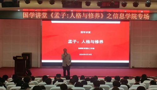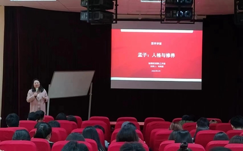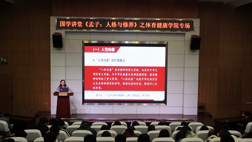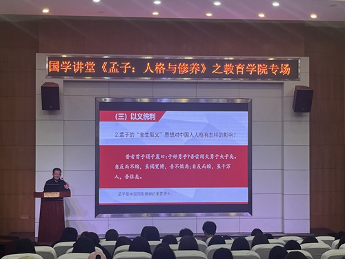 讲座以“孟子:人格与修养”为主题,主要讲解孟子在人格修养方面的思想主张,对中国优秀人格的形成所发挥的重要作用。讲座从孟子的“人性向善”论讲起,结合历史和现实案例,阐释了孟子的“浩然之气”“以义统利”“自强不息”等8个方面的主张。引导学生们传承中华优秀传统文化在人格精神养成方面的优秀思想,将之运用到学习、生活中去,做到见贤思齐,学以致用,成为中华优秀传统文化的积极传承者和踏实践行者,不断提升自身综合素养。