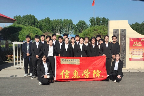 信息学院学生在石梁小学门前拍照留念
