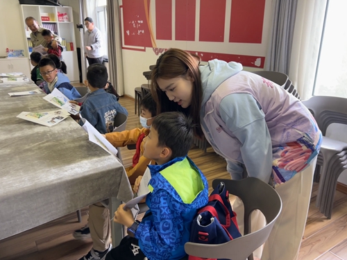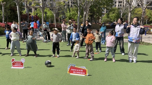 志愿者与社区青少年互动交流