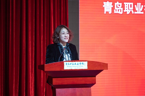 签约仪式上,乔璐代表学校致辞。她对青岛演艺集团各位领导和艺术家的到来表示热烈欢迎,对其一直以来给予学校教育发展的关心和支持表示衷心的感谢。她表示,学校全面实施美育沁润行动,致力创建有中国特色的学校美育体系,以美育人、以文化人,举办了中华优秀传统文化教育月、大学生艺术节等活动,成功打造了“青职文创市集”“东湖•青之声”音乐会等一批美育特色品牌项目,希望以此次共建“大学生美育实践基地”为契机,双方进一步着眼长远、深化交流,在专业建设、文化传承、技能实践等多领域碰撞智慧、创新实践,为构建新时代“大美育”体系作出“青职贡献”。