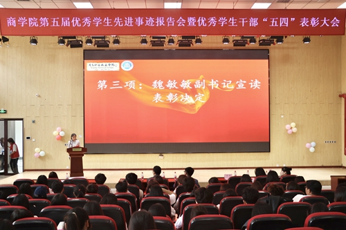 4月28日,在“五四”青年节来临之际,商学院在创意楼B401举办第五届“榜样的力量”优秀学生先进事迹报告会暨“五四”表彰大会。商学院相关负责人、全体辅导员以及2022级、2023级学生参加了活动。