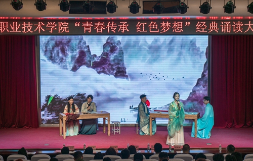 此次大赛分为文化传承、激昂青春、追梦启航三个板块,各二级学院积极参与,在前期选拔的基础上推荐优秀经典诵读节目10个。比赛采用表演加诵读的方式,学生们以真挚的情感和昂扬向上的姿态声情并茂地朗诵经典,用富有感染力的声音诠释富含哲理的诗词经典,赞颂祖国的伟大成就,使现场师生深刻感受中华诗词的无穷魅力,活动现场气氛热烈。