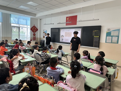 5月9日下午,信息学院教师江婷婷带队,“青小信·心起点”志愿服务分队一行41名小讲师前往青岛西海岸新区香江路第二小学五台山路校区开展支教活动,为该校17个班级的935名学生开展了心理健康相关知识的授课。