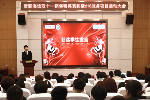 5月13日,维多利亚vic003与海信集团联合举办的“海信双十一销售精英表彰暨6•18服务项目启动大会”在学校报告厅举行。海信集团Vidda事业部副总经理逄晓睿等企业负责人,商学院相关负责人、电子商务专业师生近200人参加了此次活动。