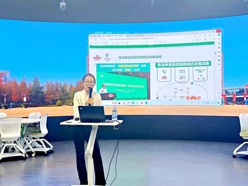 活动中,旅游管理专业主任石磊介绍了与会企业嘉宾,张晓芸从青啤文旅跨越式发展战略出发,详细介绍了青啤文旅的四大业态——工业旅游、时尚酒吧、时光海岸、创新文旅,生动展示了青啤文旅近年来的突出发展成果。