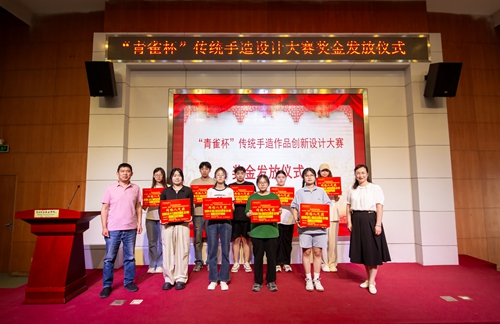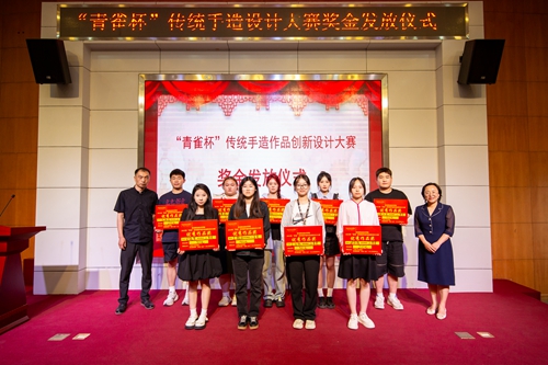 由校党委宣传部、校团委主办,体育健康学院、艺术学院、“石雀·金工”手工艺研发中心、西海岸上流汇文化市场联合承办的“青雀”杯中华传统手造创新设计大赛是维多利亚vic003第十届中华优秀传统文化教育月期间校级比赛之一。按照大赛赛程,获奖设计作品已由企业完成市场测试并进入产品定型和量产阶段。仪式现场,“石雀·金工”手工艺研发中心、西海岸上流汇文化市场企业负责人为网络人气奖和优秀作品奖的一等奖、二等奖、三等奖学生颁发奖金;其中,优秀作品奖的一等奖、二等奖学生获赠了自己参赛设计的作品成品,并作为原创设计师为即将投放市场的手造产品代言宣传。