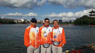 此次休闲体育大会共设有休闲赛事项目17项,其中孙庆、程景瑞、刘志刚主要负责龙舟国际项目的赛事裁判,牟晓峰负责沙滩排球国际项目的赛事裁判。在赛场上,几位教师不怕苦、不怕累,圆满地完成了赛事组委会分配的任务,得到了一致认可。