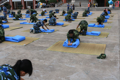 叠军被比赛以“个人赛”进行,每床军被必须在规定的5分钟内叠放整齐,由6名教官根据统一的要求对参赛的100名学生的表现进行打分。选手们准备充分,沉着应对,随着计时员哨响,比赛正式拉开帷幕。按照军训叠军被要求,选手们迅速将原本柔软的被子“加工”成方方正正、棱角分明的“豆腐块”,赢得了现场评委及观众的热烈掌声。