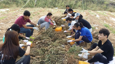 活动中,“青之园”的指导老师为同学们发放工具和手套,并指导大家到农田里劳作,其中最主要的任务是摘花生。同学们围坐在一起,每人面前一个袋子,进行比拼,最后谁的袋子里花生最多,谁获胜。上午的活动结束后,同学们共进午餐,喜谈收获,下午在指导老师的带领下认识基地的各种蔬菜,学习农业知识。