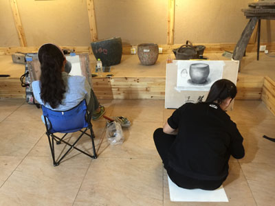 9月28日,民间技术馆迎来了2015级艺术设计1班的36名新同学。艺术学院魏新文老师把他的素描课课堂从画室搬到了民间技术馆。