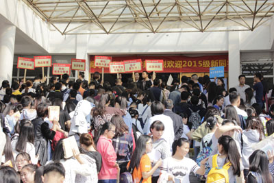 9月12日,旅游学院2015级学子报到入学。在学生处和团委等有关部门的统筹下,经过旅游学院的老师和同学们的努力,各项迎新工作进展顺利。来自全国各地的850名新生在学长学姐们和老师的引导下,有秩序地完成了报到手续。