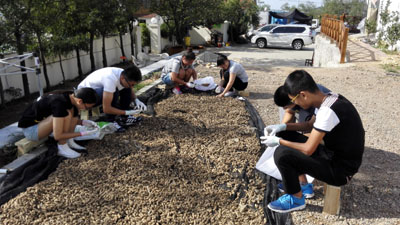 活动中,10名同学在蔬菜基地技术员的指导下分组进行劳动,部分同学们来到萝卜地、芋头地和黄瓜地进行除草工作,部分同学则负责挑拣花生。大家在田间地头埋头苦干,体现出不怕累不怕脏的良好精神面貌。技术员还指导学生们分辨各种植物,介绍农作物生产的常识,大家学得十分认真。海化2014级1班的高佳平同学表示,自己在城市长大,对农作物并不熟悉,这次见到了秋葵、芋头等农作物原本的样子,真是开阔了眼界。