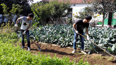 知行书院志愿者在青之园蔬菜基地进行劳动实践