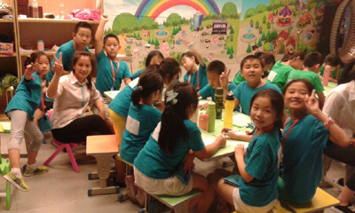 志愿者教小朋友画画