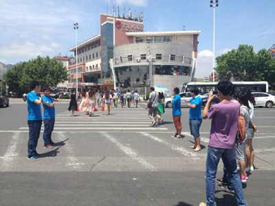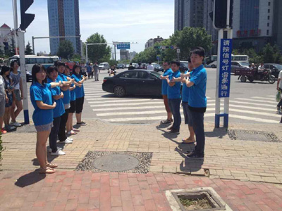 8月7日上午,知行书院团总支组织2014级应用化工技术3班的学生组成社会实践小组来到香江路的三叉路口,进行“指挥交通,倡导安全文明出行”实践活动。 活动中,学生积极主动、认真负责。在红灯、绿灯亮起时,相互配合,指挥行人有序穿过马路。出于安全考虑,会有专人时刻注意并提醒、劝阻想要闯红灯的行人。在指挥交通之余,有路人向学生问路,学生热情指路并受到好评。