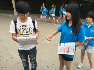 8月11日,知行书院“义卖报纸,与爱同行”社会实践团队学生在黄岛区开展了义卖报纸活动。 活动中,同学们与报社取得联系,穿着统一服装在不同地点进行售卖,引起了周围行人的关注。志愿者们每成功售出一份报纸时,都难掩心中喜悦,市民也纷纷配合购买报纸,并对志愿者表示鼓励和赞赏。 此次活动共筹善款168元,全部捐给胶南聋哑学校学生。