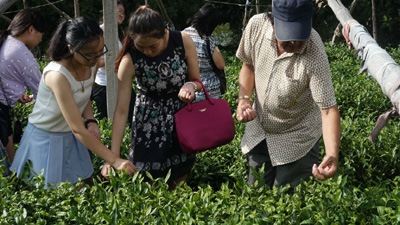 7月23日,“美丽乡村行”社会实践团来到辛安街道上庄社区,跟随当地创业模范邓环太先生学习采茶的诀窍以及炒茶的奥妙,并与他交流创业历程。同学们在体验茶园生活、了解中国悠久的茶文化的同时,学习到创业经验。