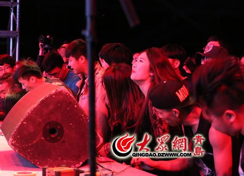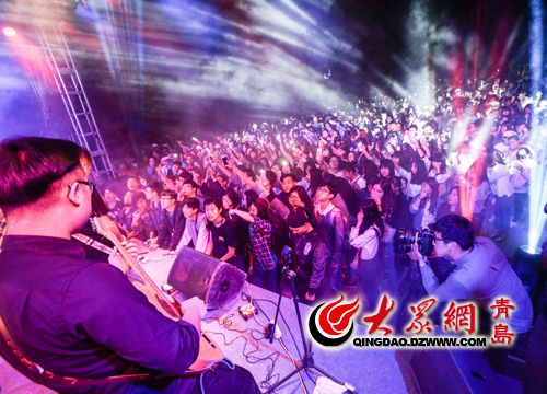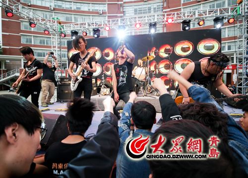 同样是青岛90后的摄影师王炳强,也带来了他自己冲洗的一组黑白的摄影作品《城市边缘》,让人看后感到很震撼,记者看到现场前来参观的同学频频驻足在他的作品面前观望。谈起创作,他告诉记者自己其实就是一家影楼的摄影师,但他并没有兴趣去拍摄那些被制式化的商业区,人口失常的老城区也让他感到索然无味,他最感兴趣的就是去海边和远离城区的地方。 在该校图书馆门前的广场上,大型的聚光灯舞台从2时许,就已经聚满了前来观看演出的师生,该校社团的未知摇滚乐队刚登台,就引燃了台下师生们热情,随后的hot swallow乐队、平原斯基乐队、highway50乐队、dummy toy乐队然在场的近万名师生嗨翻了天。该校商务学院的一名宋姓的女生告诉记者,虽然校内经常组织一些文体活动,但像今天这么精彩的一些艺术形式,让她开了眼界,更重要的是看到这些知名乐队的火爆演唱,让他们感到放松了身心,减轻了学习的压力。